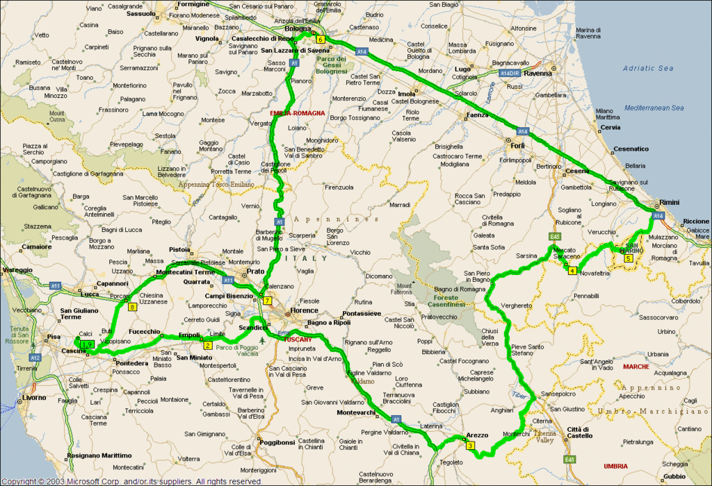 Det er to rekorder knyttet til reising denne sommmeren: Nedover greide vi hele strekningen på 74 timer. Oppover greide vi en gjennomssnitthastighet over turens første 12 timer på 95 km/t; dette inkluderer kaffepauser og passering av Alpene ved San Bernardino. Uansett: